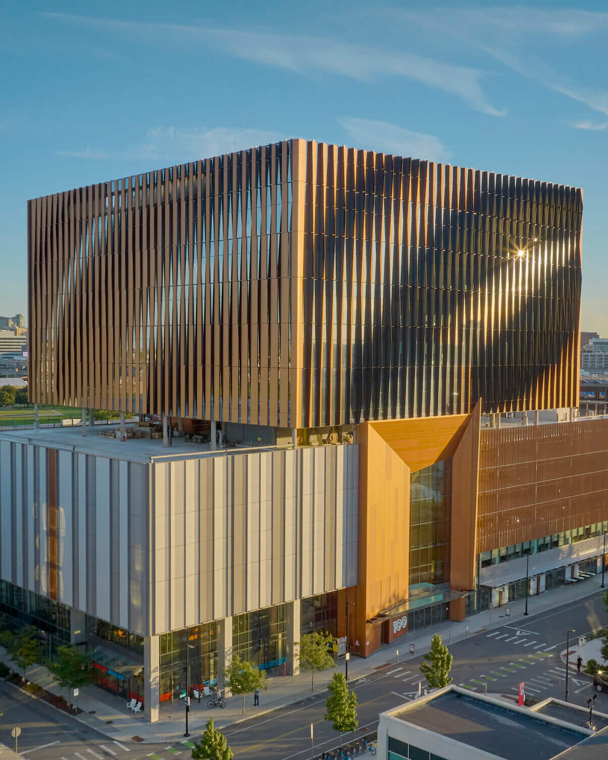 Eight stories of lab and office space atop an existing three-level parking garage and ground-level retail space.