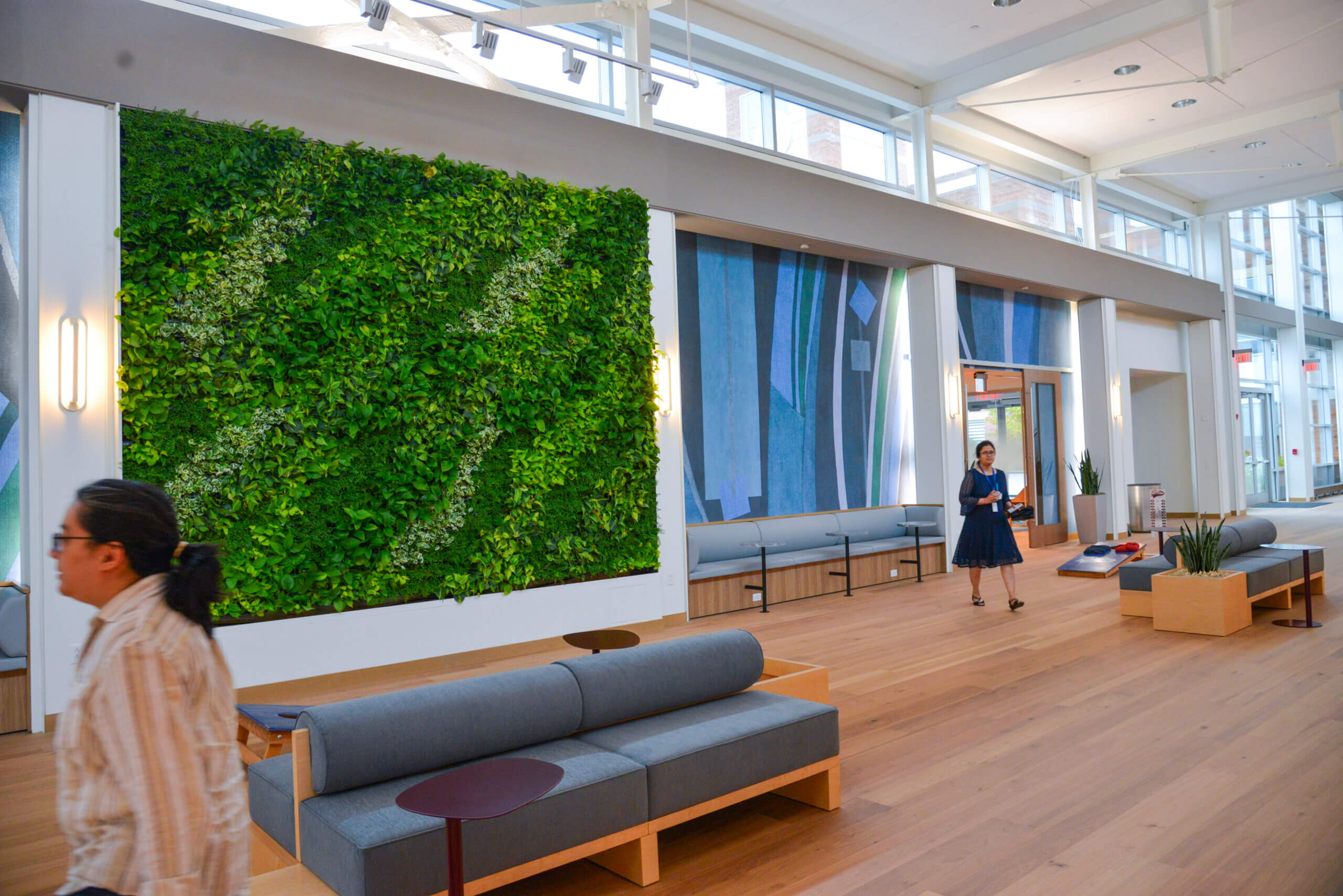 New spaces include a fitness center with sign-up group classes. Mindfulness rooms with soft lighting and soothing soundscapes allow workers to unwind alone or enjoy massages, manicures, and guided meditations.