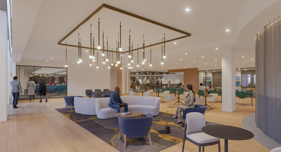 “With SMMA’s new design, Blue Sky Center competes with living rooms and high-end hotels. It delivers the diverse experiences that employees demand, with programming that builds energy and multi-functional spaces that proactively engage with occupants.”