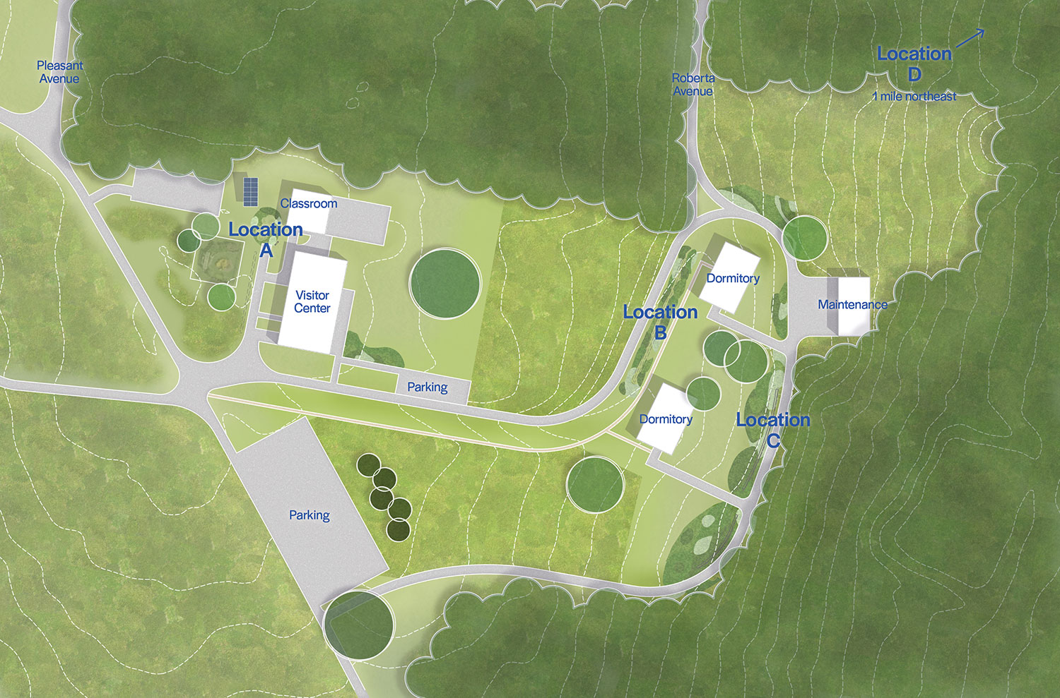 Each intervention responds to local soil conditions, shallow groundwater, and surrounding habitats, minimizing disturbance while enhancing previously developed areas of the campus.