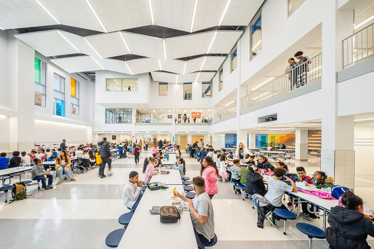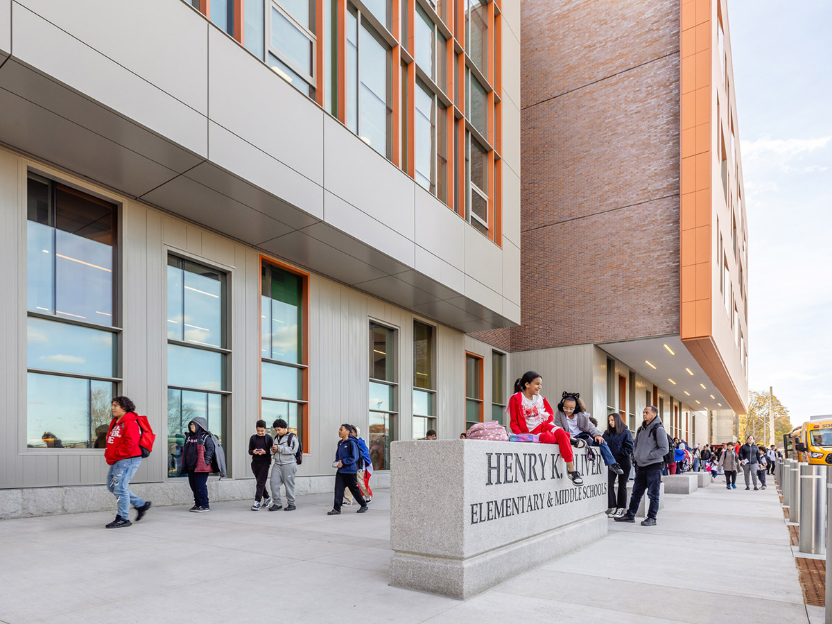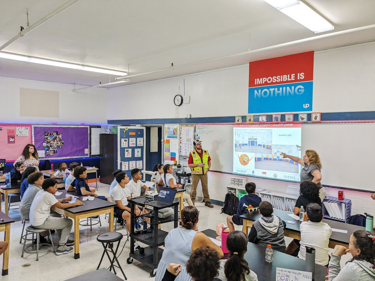 In September 2023, as demolition and construction was in full swing, SMMA’s team gave a bi-lingual Q&A with four classes of 6th graders about their new school. These students are set to be the first graduating 8th grade class of the new Henry K. Oliver. The team discussed everything from the building systems to the 4' thick slab – but what drew the loudest cheers on this 86'F day was the news that their new school will be fully air-conditioned.