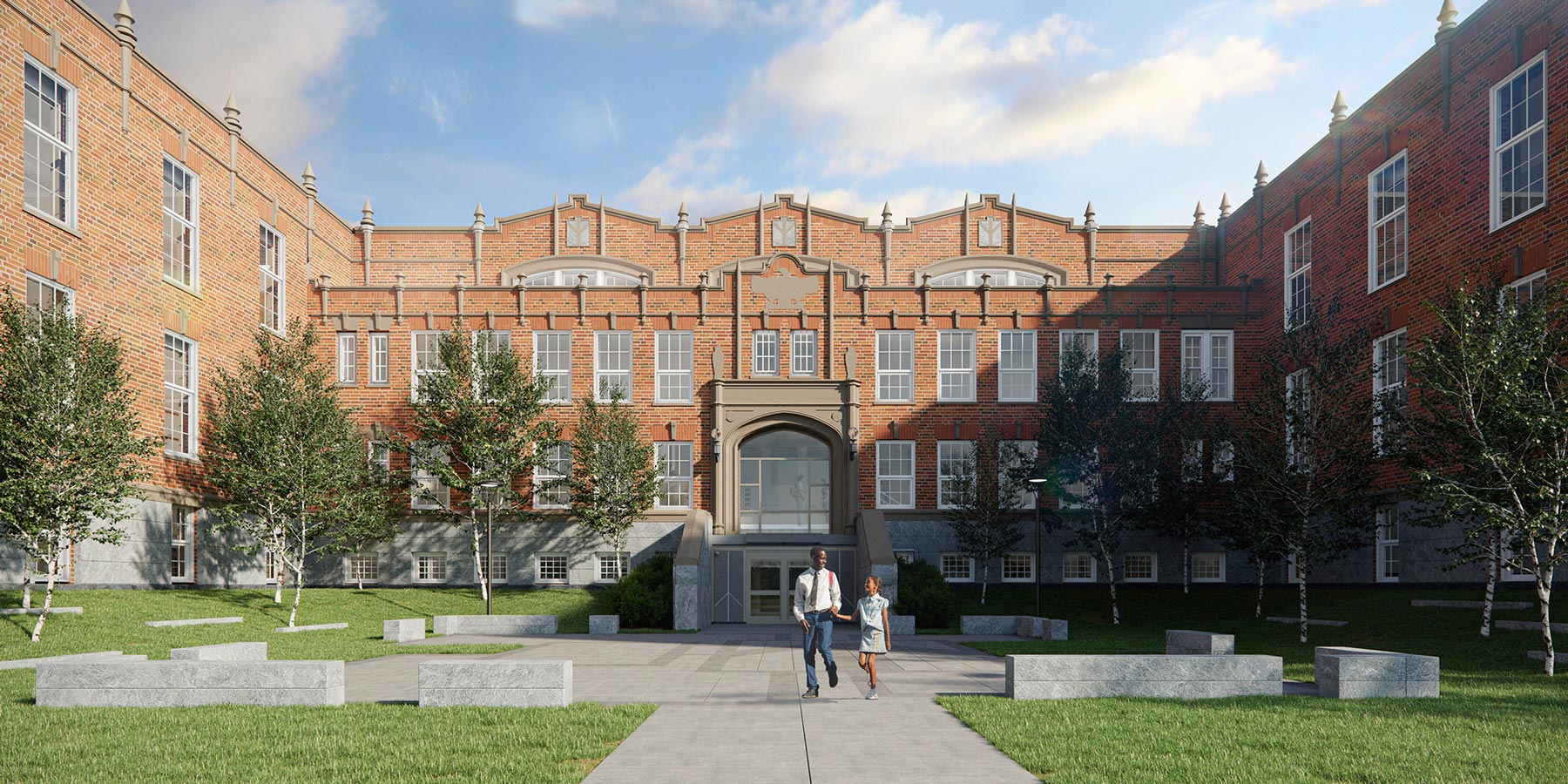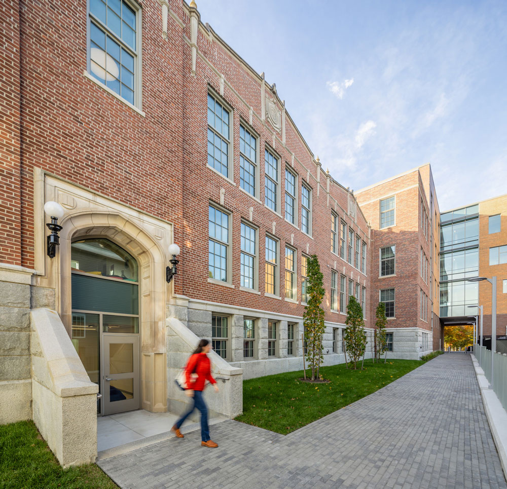 SMMA worked with Lawrence Public Schools and state and local historic commissions to preserve and enhance the symbolic south-facing portion of the building. The design retains key historic façades and architectural details. This involved reinforcing existing masonry walls to blend seamlessly with new construction.