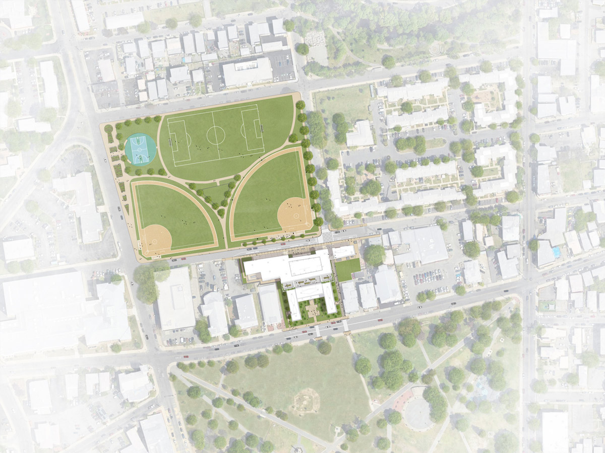 The new design reimagines Cardillo Way as a car-free, walkable portal connecting O’Neill Park with the north and the Commons to the south.