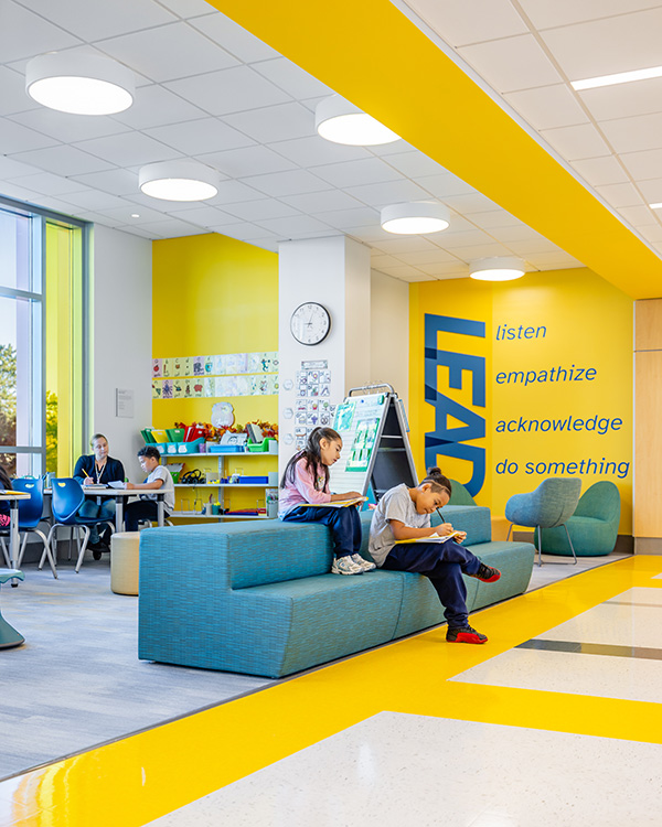 The design for the new Oliver school introduces learning stairs, distributed media centers, outdoor learning spaces, and collaborative “breakout areas” that support small-group work and diverse learning styles. These spaces allow teachers to move beyond traditional classroom setups, encouraging project-based and team-oriented learning.