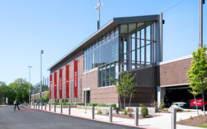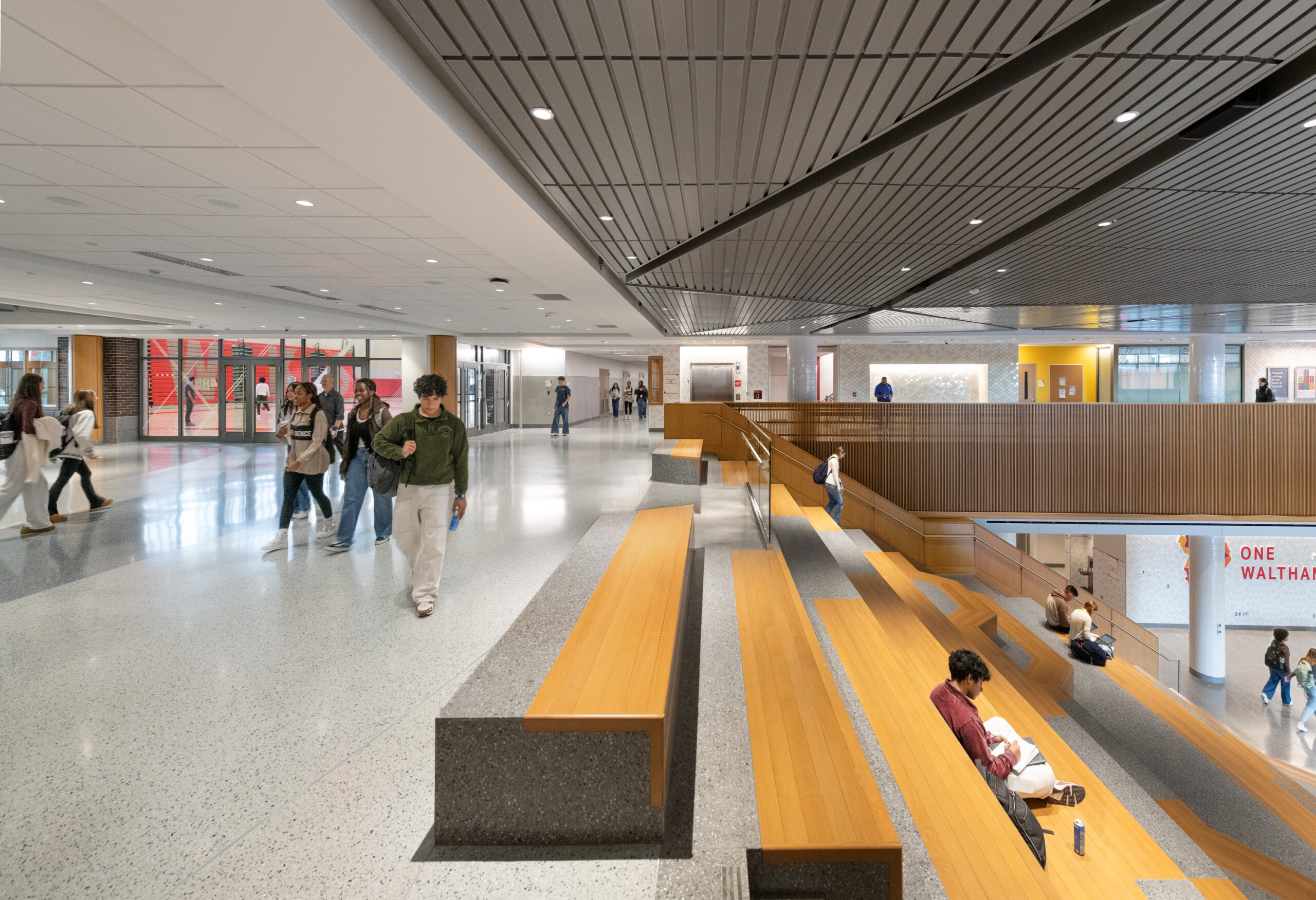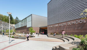 The design of Waltham High School celebrates this tradition. The school’s brick façade with regular openings pays homage to the historic mill buildings that once defined the city’s industrial landscape.