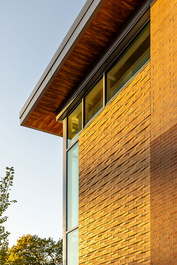 Brick corbelling creates a simple weaving pattern that lends a modern take on a classic New England material.
