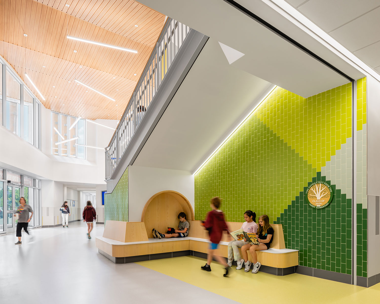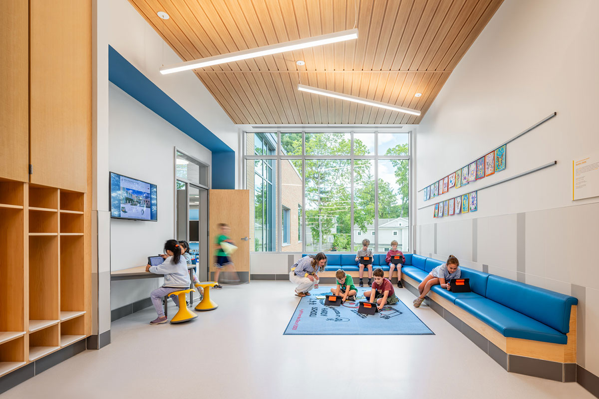 Informal learning spaces offer a change of pace from classroom instruction. Creative features such as built-in benches and soft furniture create opportunities for chance encounters while fostering a sense of safety and belonging.